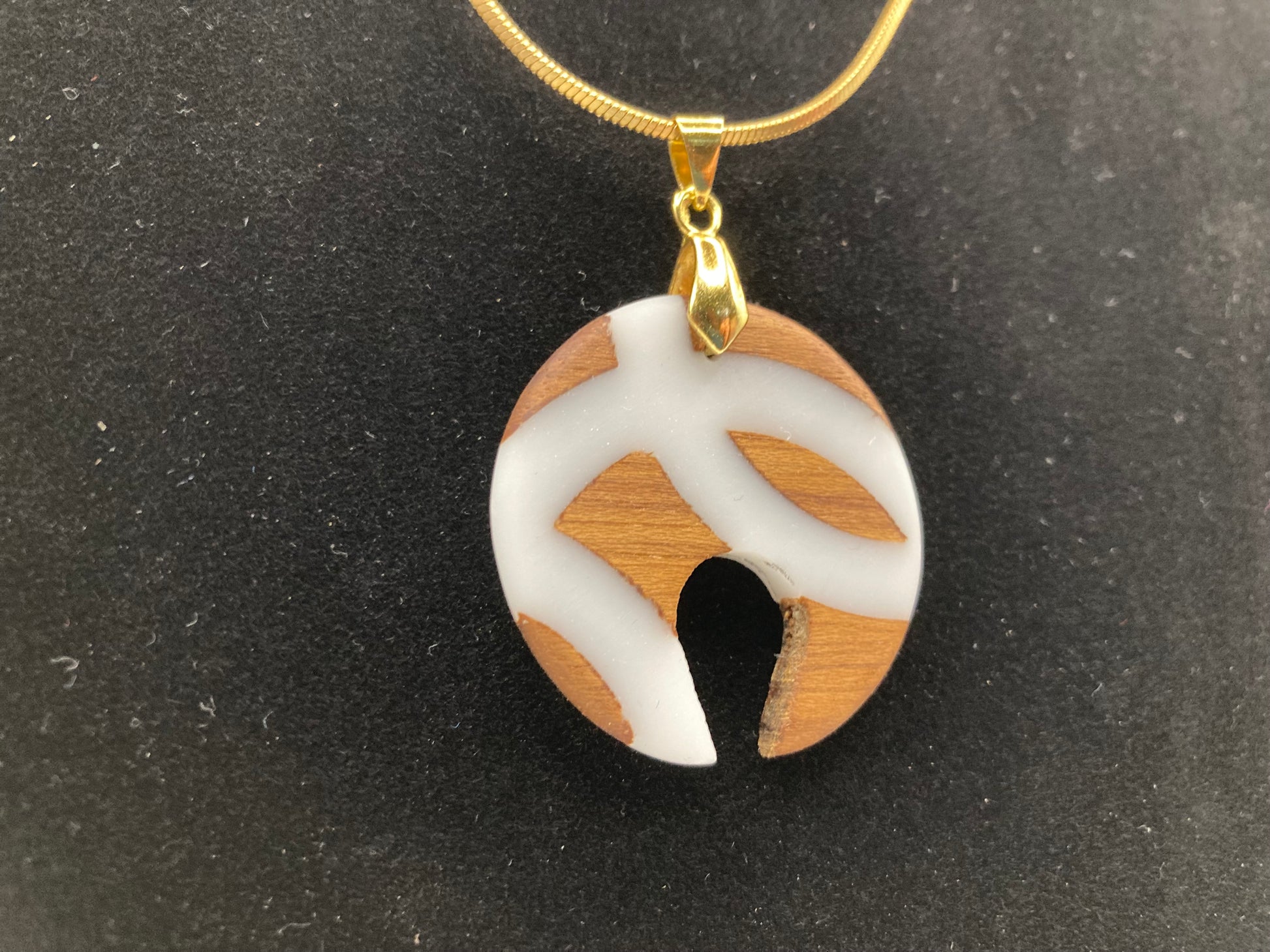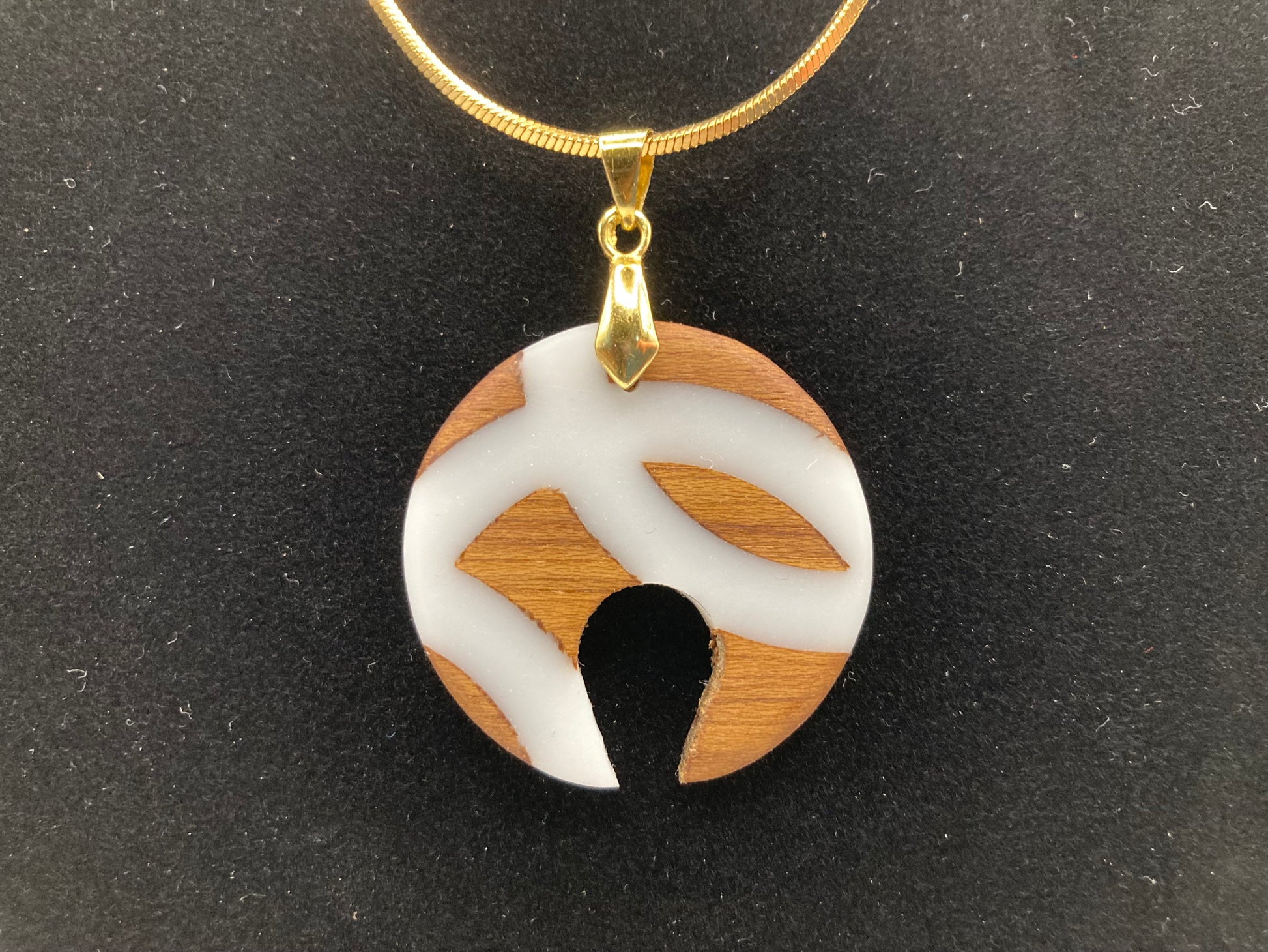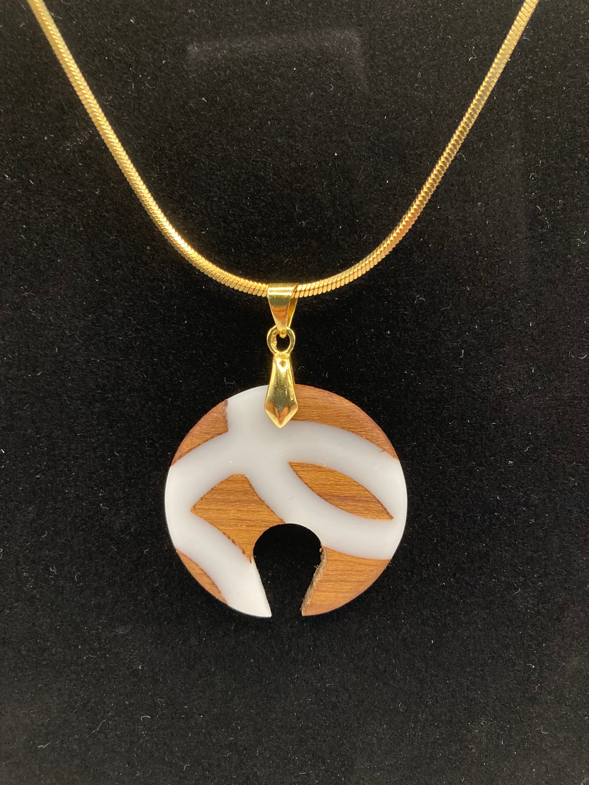 Ce pendentif unique associe la chaleur du bois naturel et la pureté de l’époxy blanc. Ses lignes organiques rappellent l’équilibre entre nature et modernité, pour un bijou élégant et intemporel.