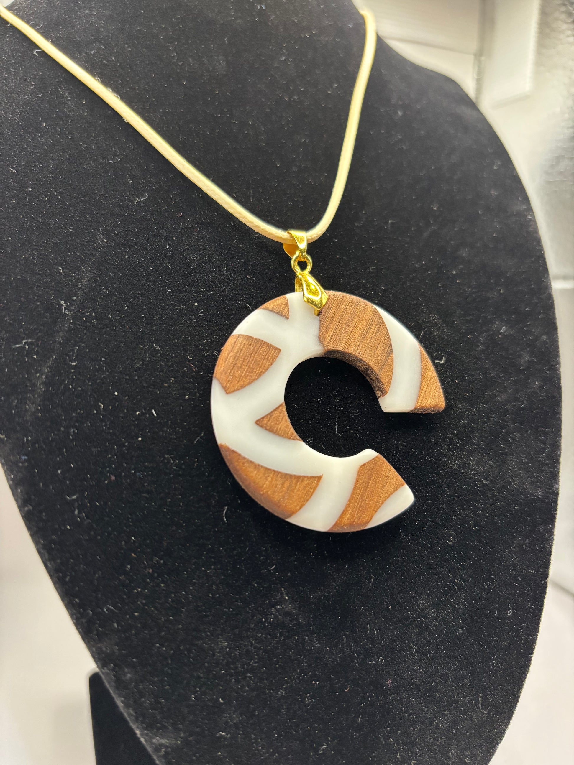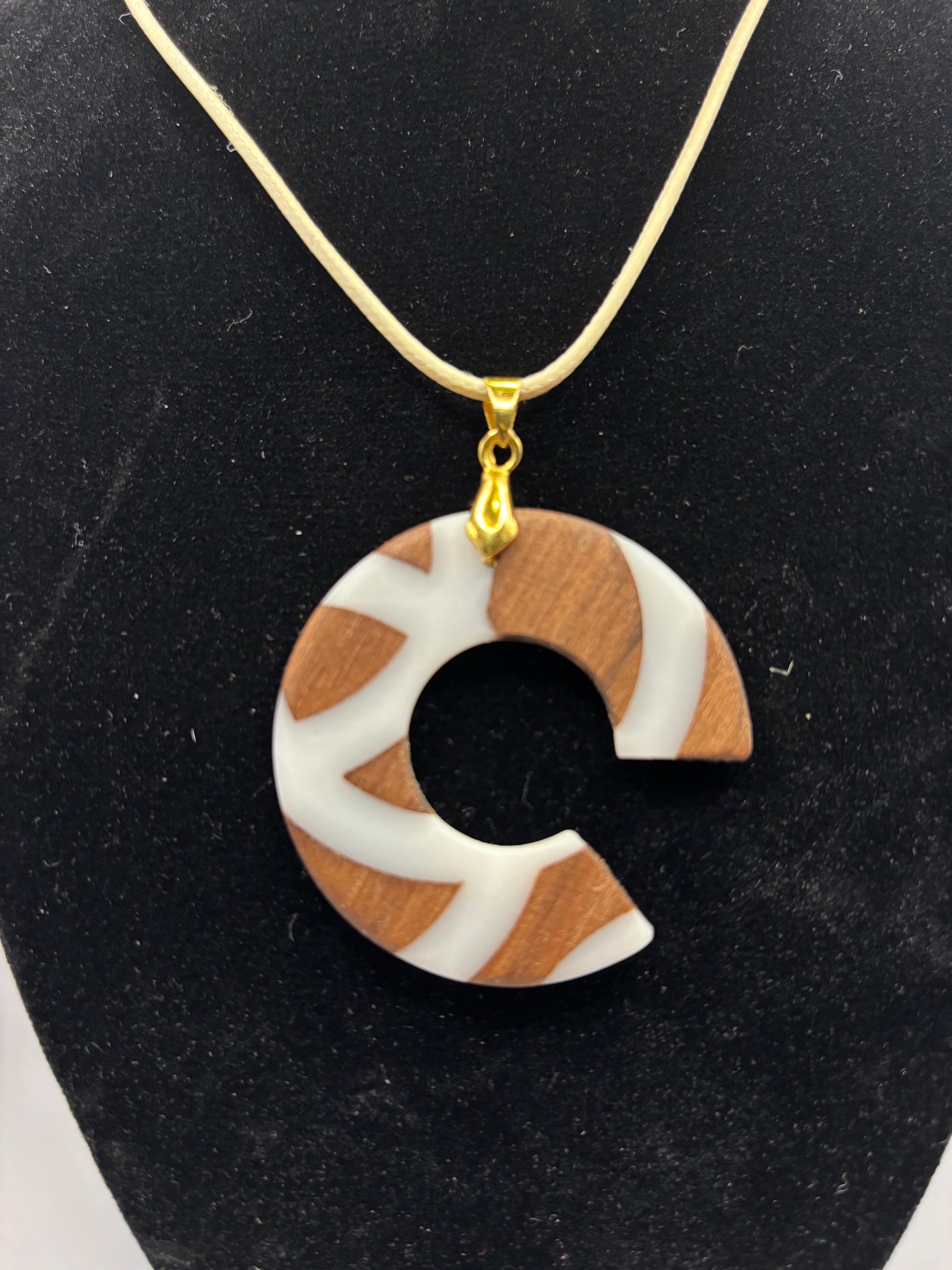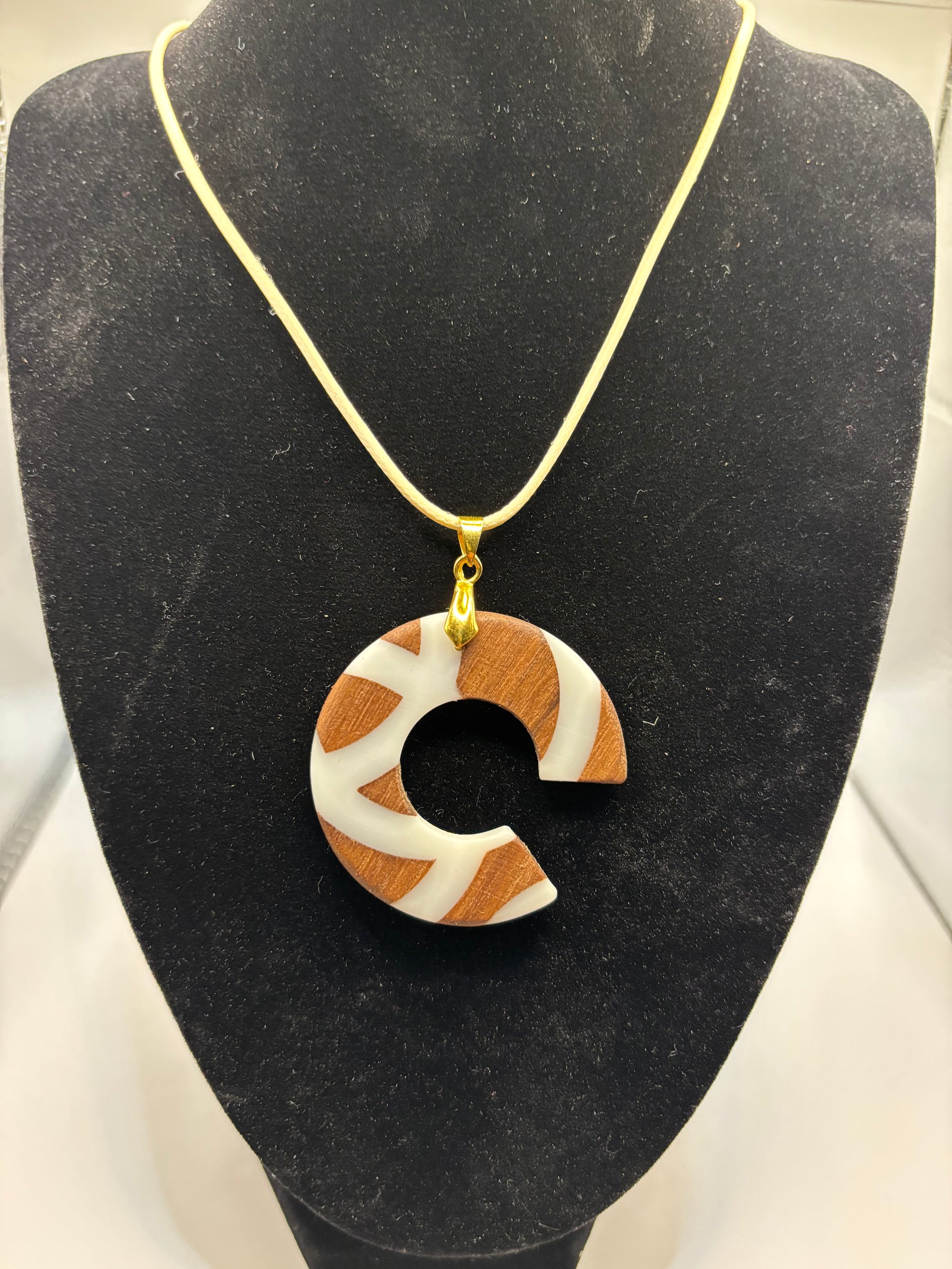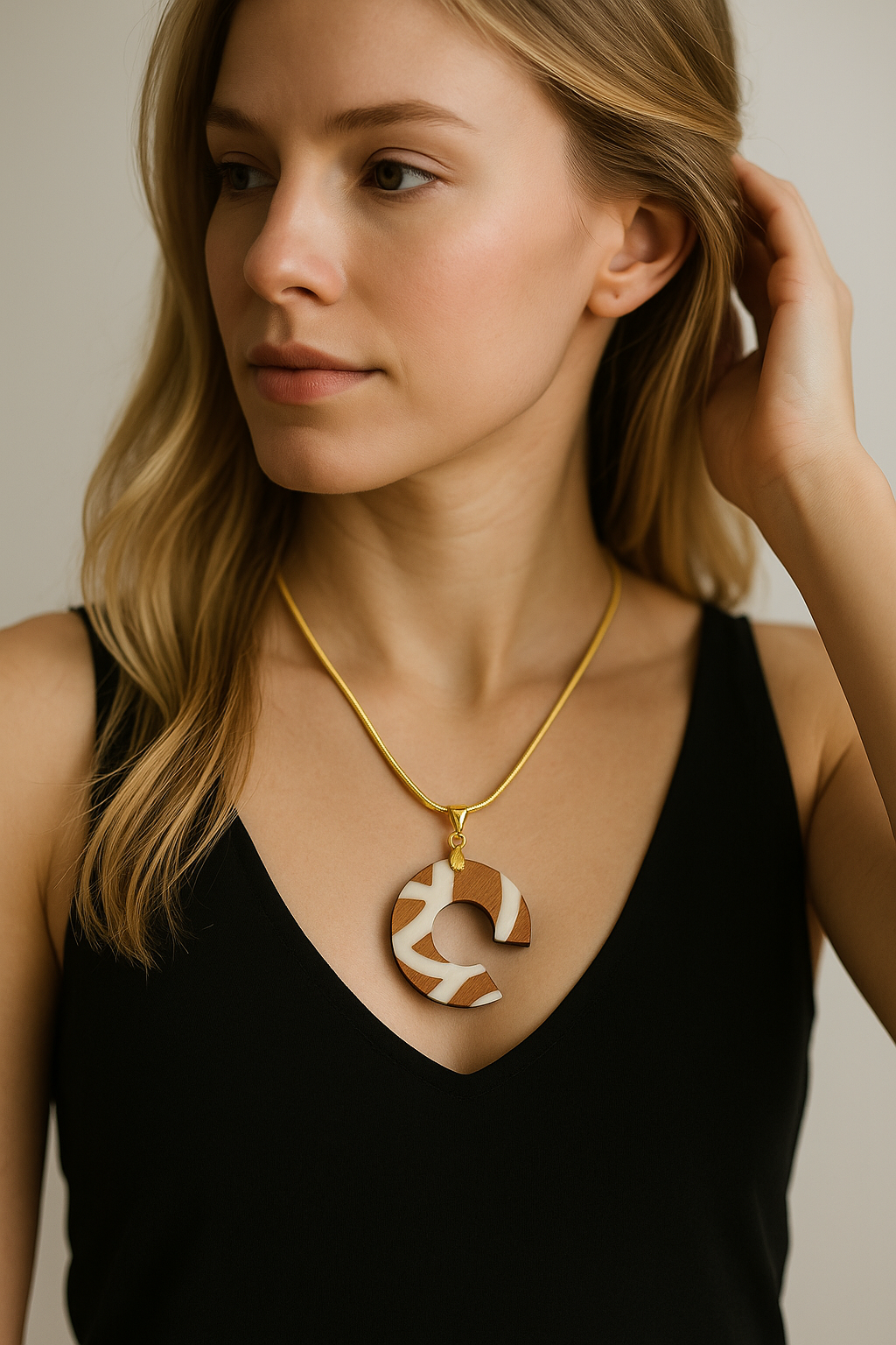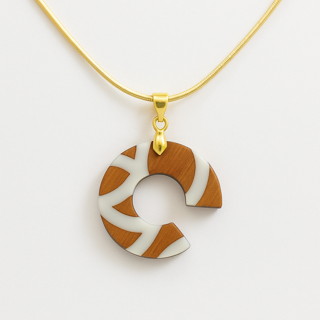 Ce pendentif unique associe la chaleur du bois naturel et la pureté de l’époxy blanc. Ses lignes organiques rappellent l’équilibre entre nature et modernité, pour un bijou élégant et intemporel.