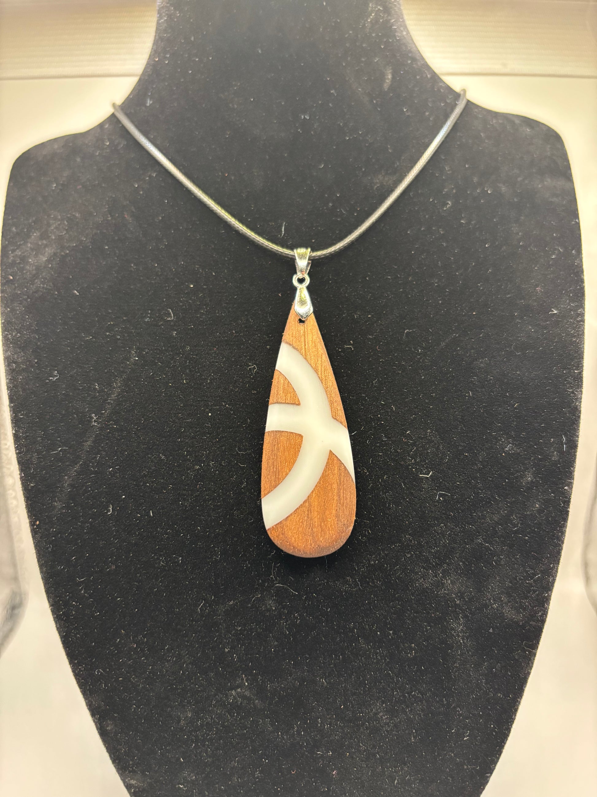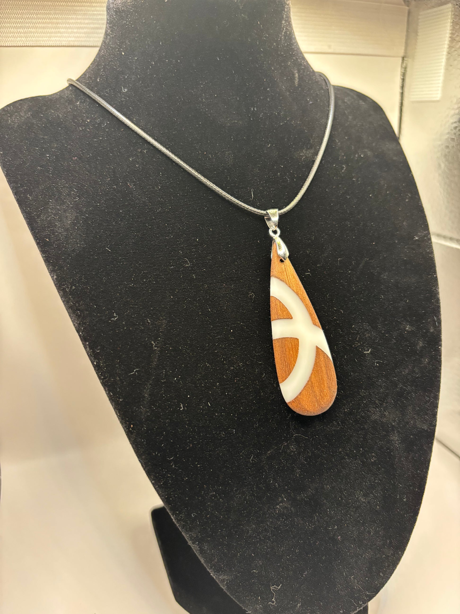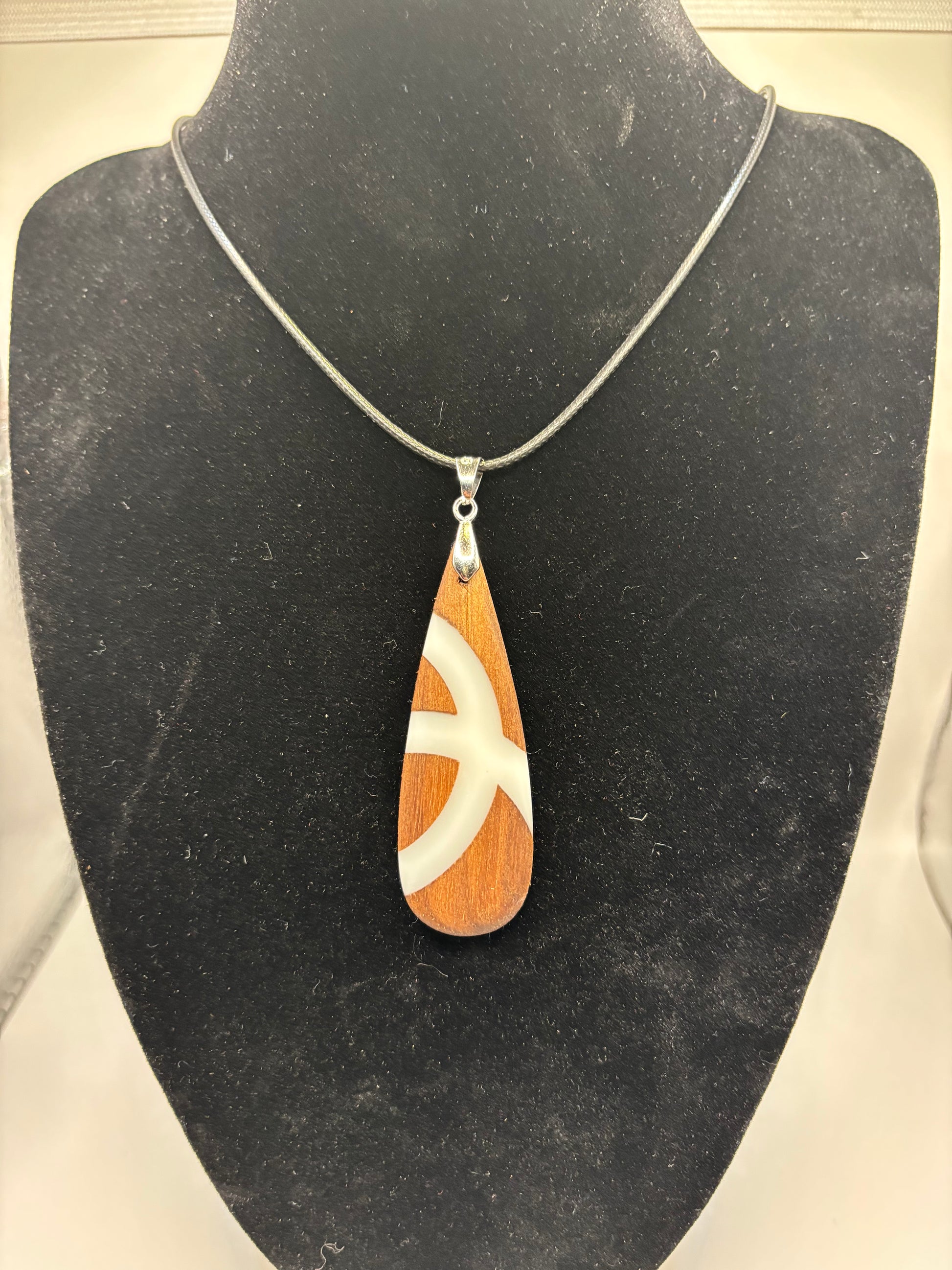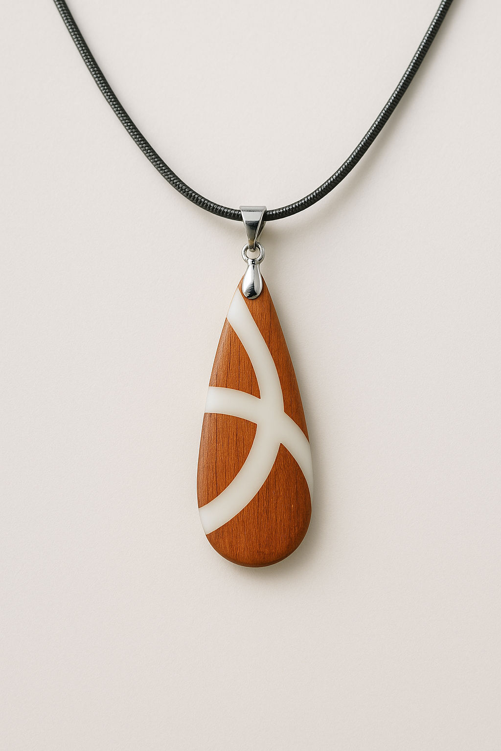Ce pendentif unique associe la chaleur du bois naturel et la pureté de l’époxy blanc. Ses lignes organiques rappellent l’équilibre entre nature et modernité, pour un bijou élégant et intemporel.